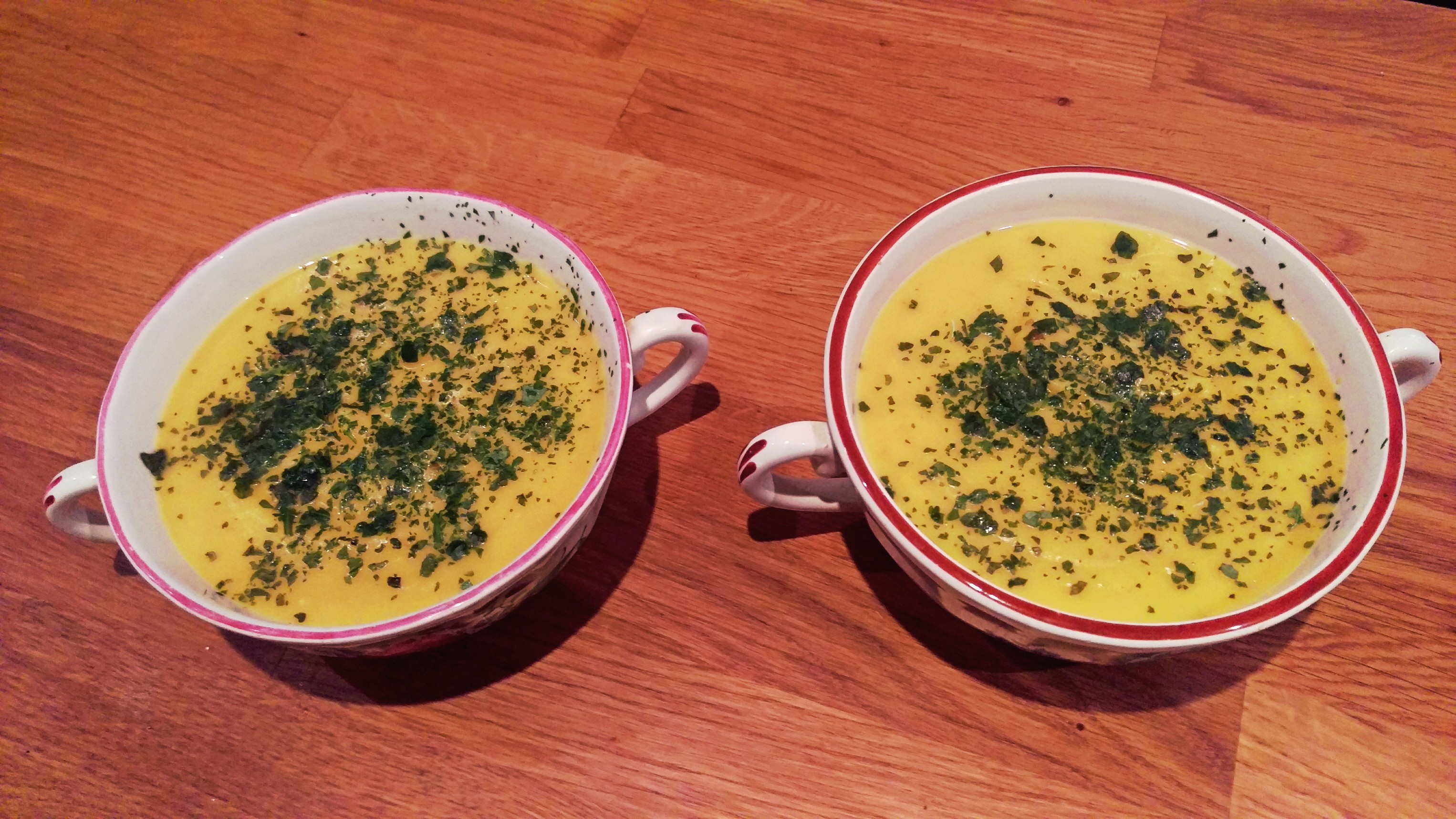 Ce lundi pluvieux m’a donné l’envie de refaire des soupes! Une amie m’ayant généreusement déposé une belle courge butternut et des pommes de terre de la ruche qui dit oui, je tente une recette de velouté qui m’a beaucoup plu 🙂