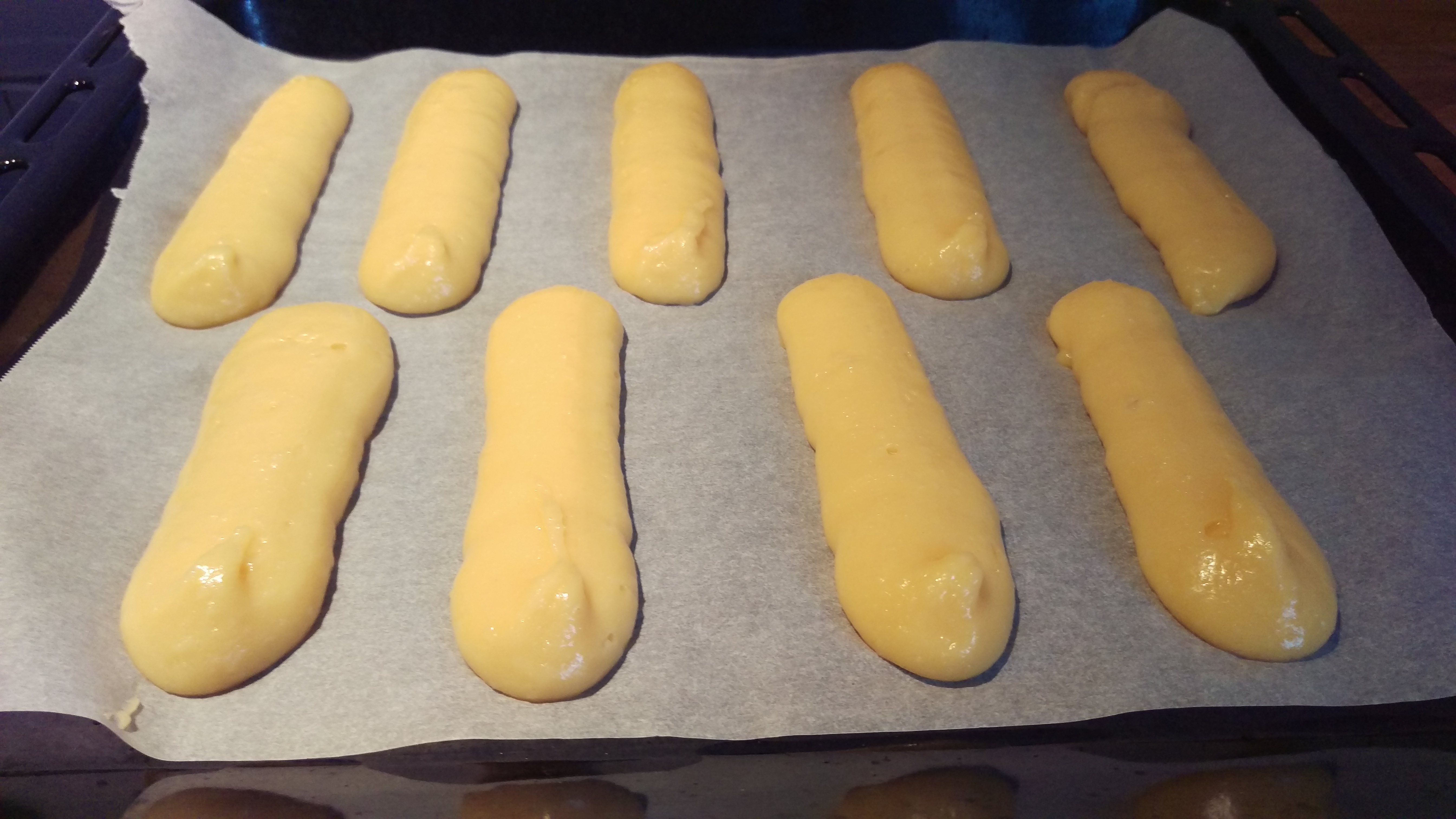- Dans une poche à douille, former les éclairs sur une plaque recouverte de papier sulfurisé.