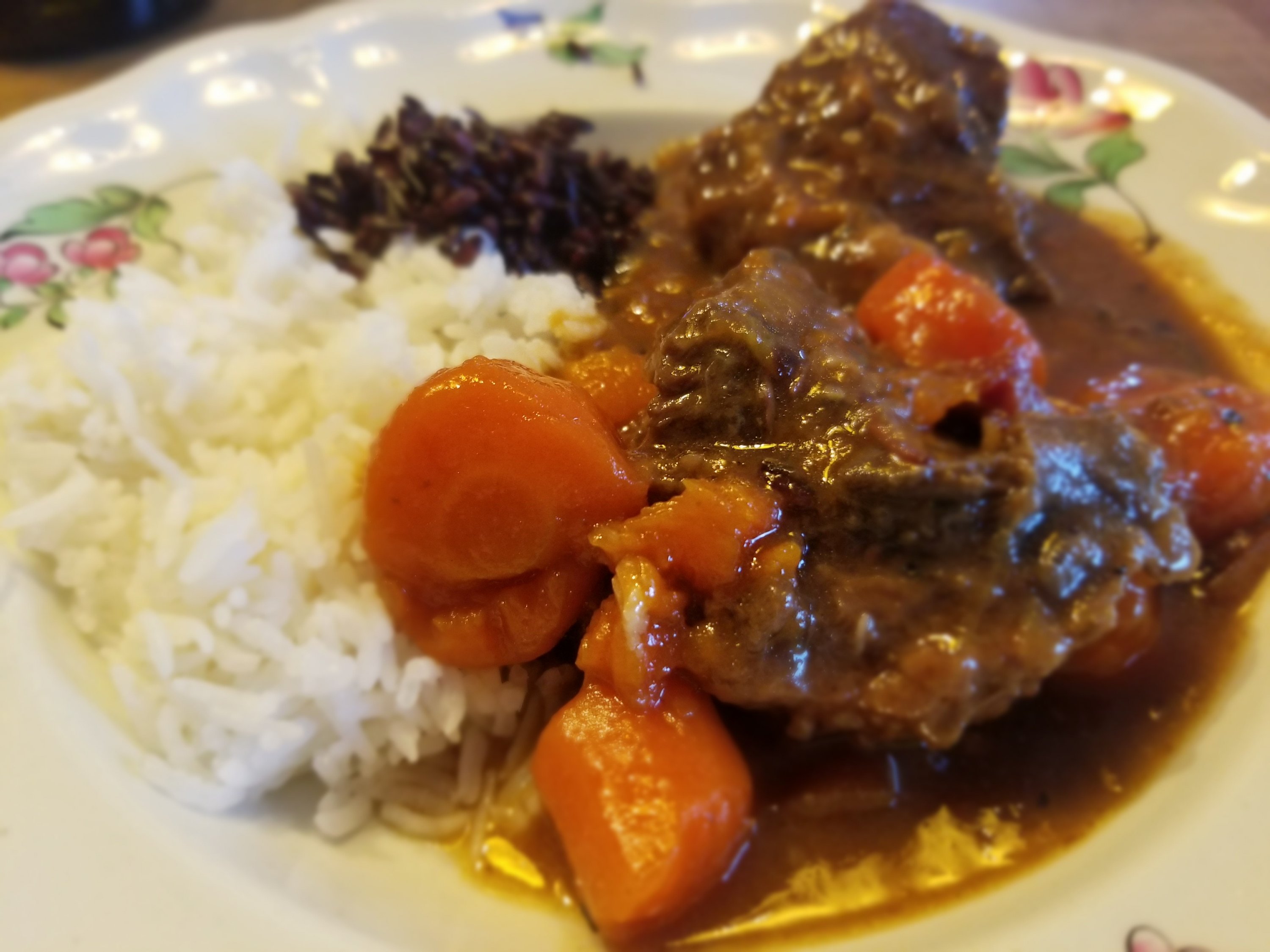 Pour changer du bœuf bourguignon et de la blanquette de veau qui rythment les repas du WE pendant l’hiver, j’ai voulu tester la carbonade flamande et je n’ai pas été déçue. J’ai fait ma recette en me basant sur mon classique bœuf bourguignon, en remplaçant le vin par de la bière brune et en ajoutant le pain d’épice à la moutarde sur la fin.