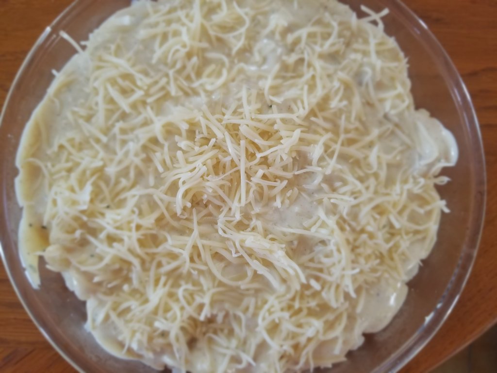 - Dans un plat à gratin, étaler le chou-fleur au fond puis verser la béchamel par dessus. Parsemer de gruyère râpé.