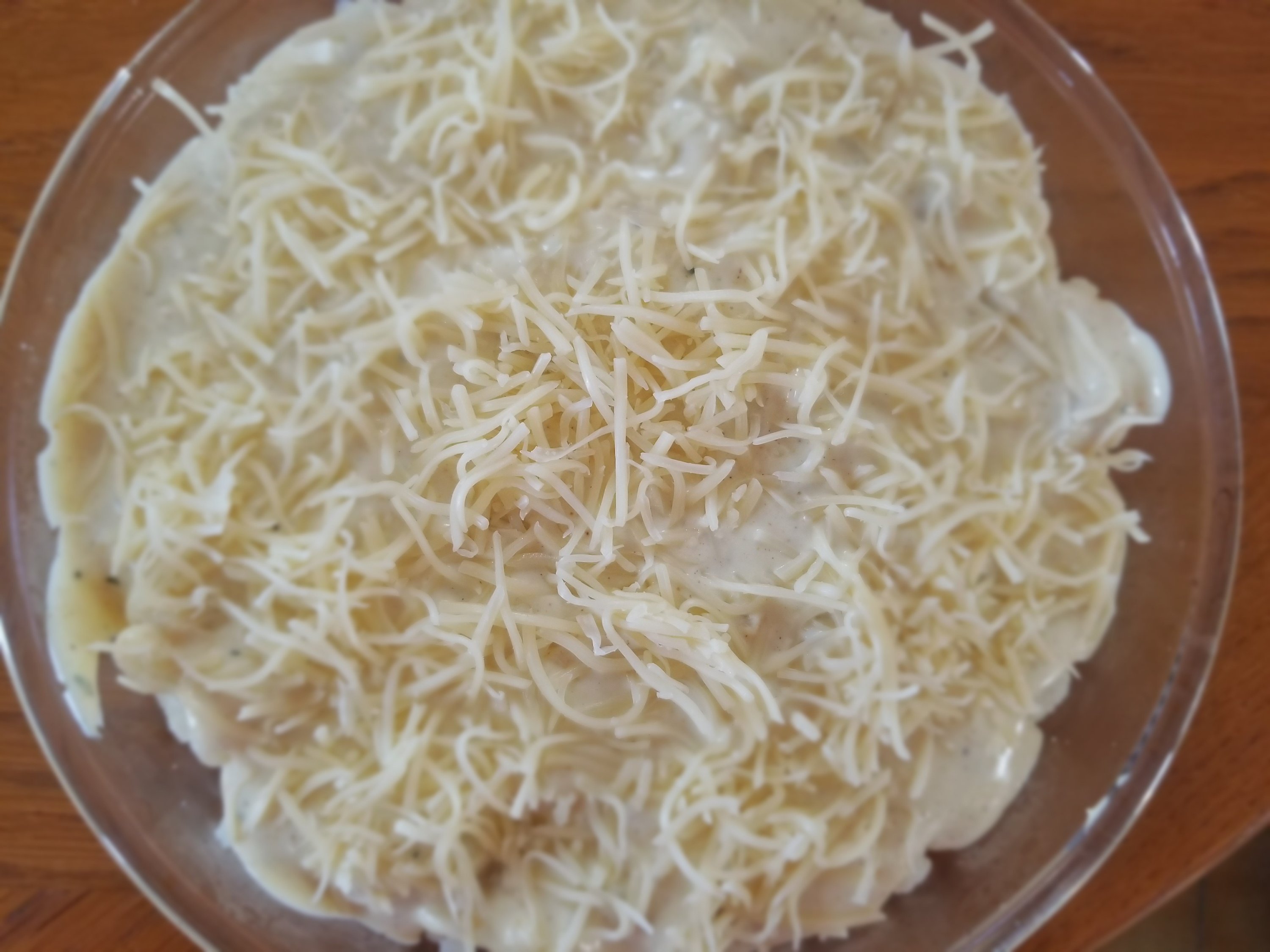 - Dans un plat à gratin, étaler le chou-fleur au fond puis verser la béchamel par dessus. Parsemer de gruyère râpé.