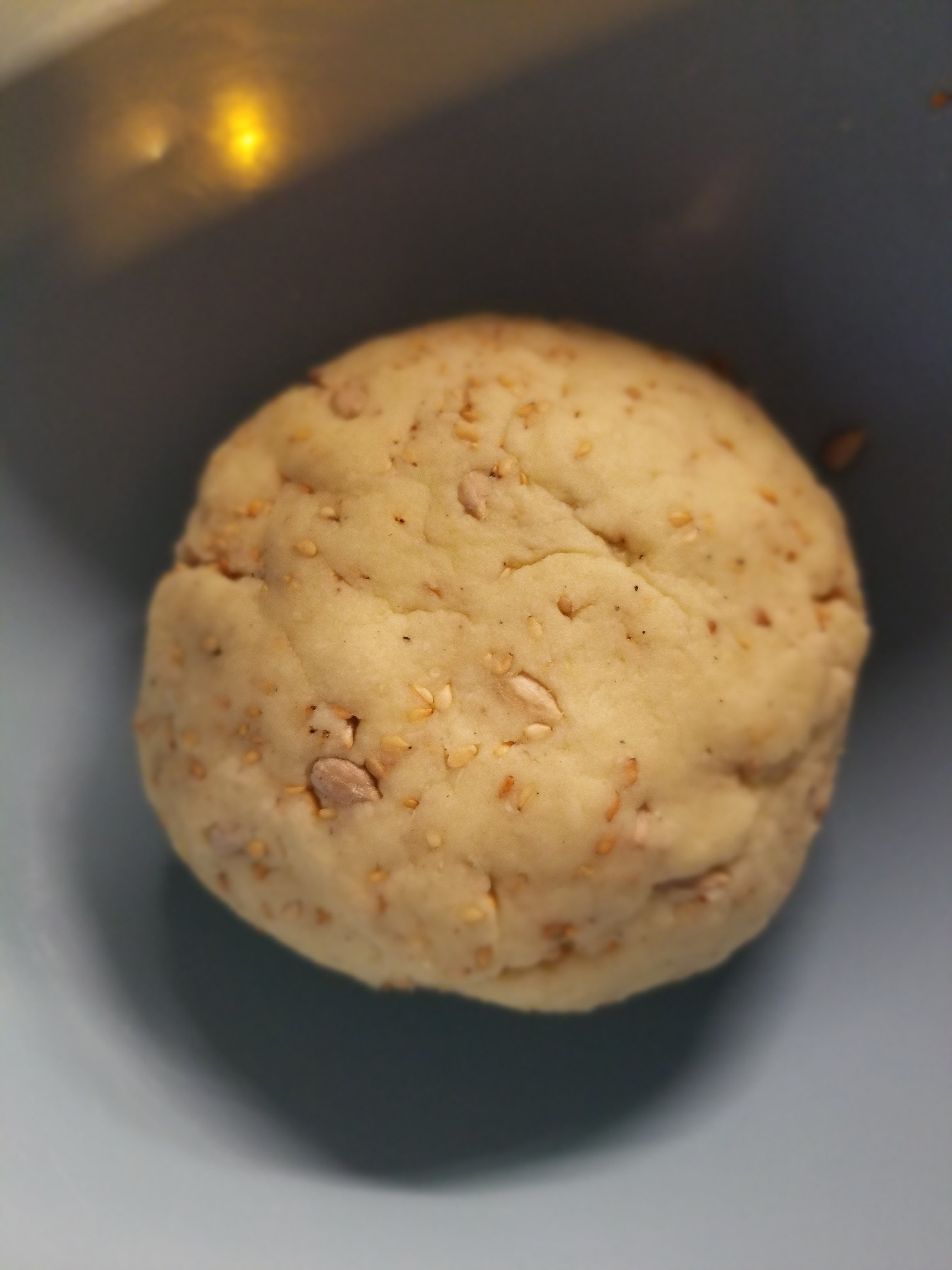 - Ajouter le parmesan, les graines de sésame et les graines de tournesol et bien malaxer la pate.