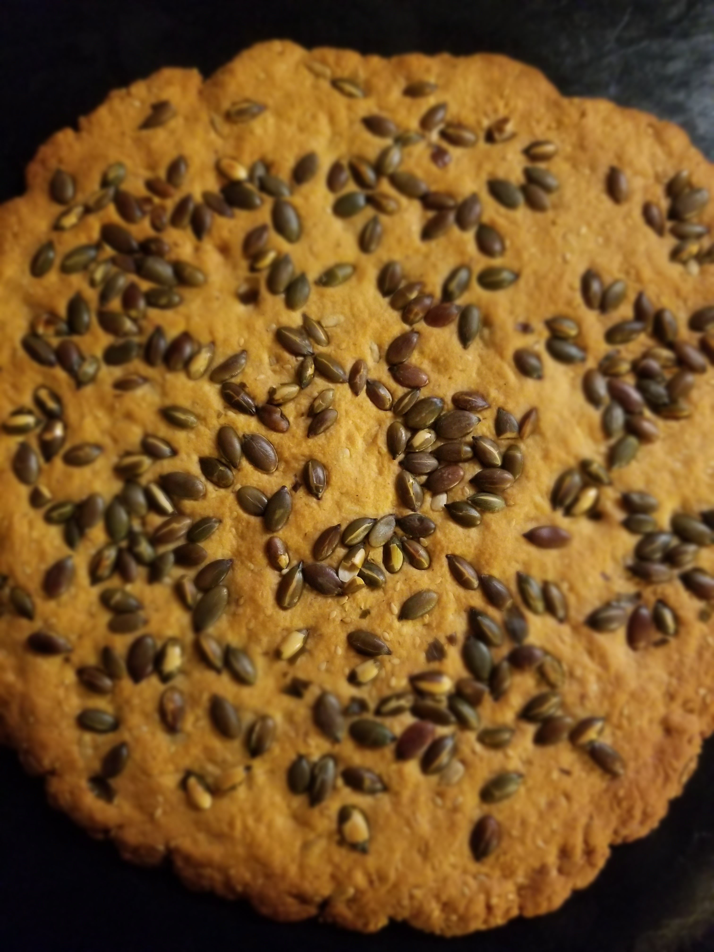 - Laisser refroidir un peu et casser le crackers. A tremper dans un guacamole, un dips de poivron ou un caviar d’aubergine.