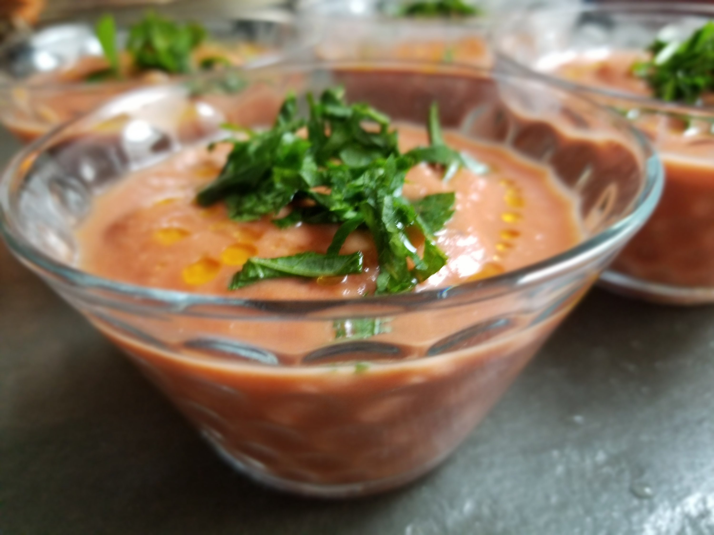 D’une discussion de soupe froide au bureau, l’envie m’a attrapée de faire un gaspacho le soir même. Et comme j’aime quand les recettes sont simples, je n’ai pas été déçue avec cette idée de prendre des tomates pelées en conserve!