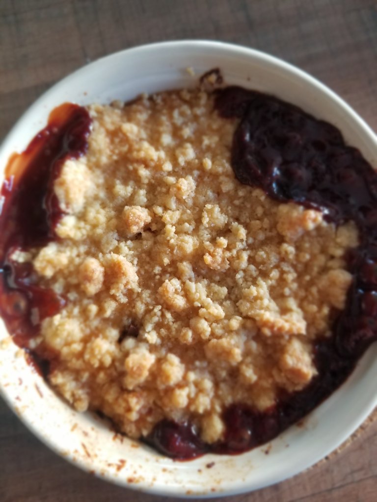 Je n’ai jamais trop aimé les crumbles jusqu’au jour où j’ai goûté ce crumble chez ma pote Caro 😉 il y a quelques années maintenant!