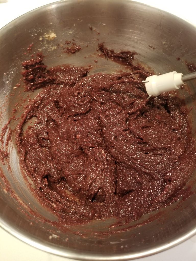 - Ajouter la purée de noisette, la poudre d’amandes et le chocolat fondu.