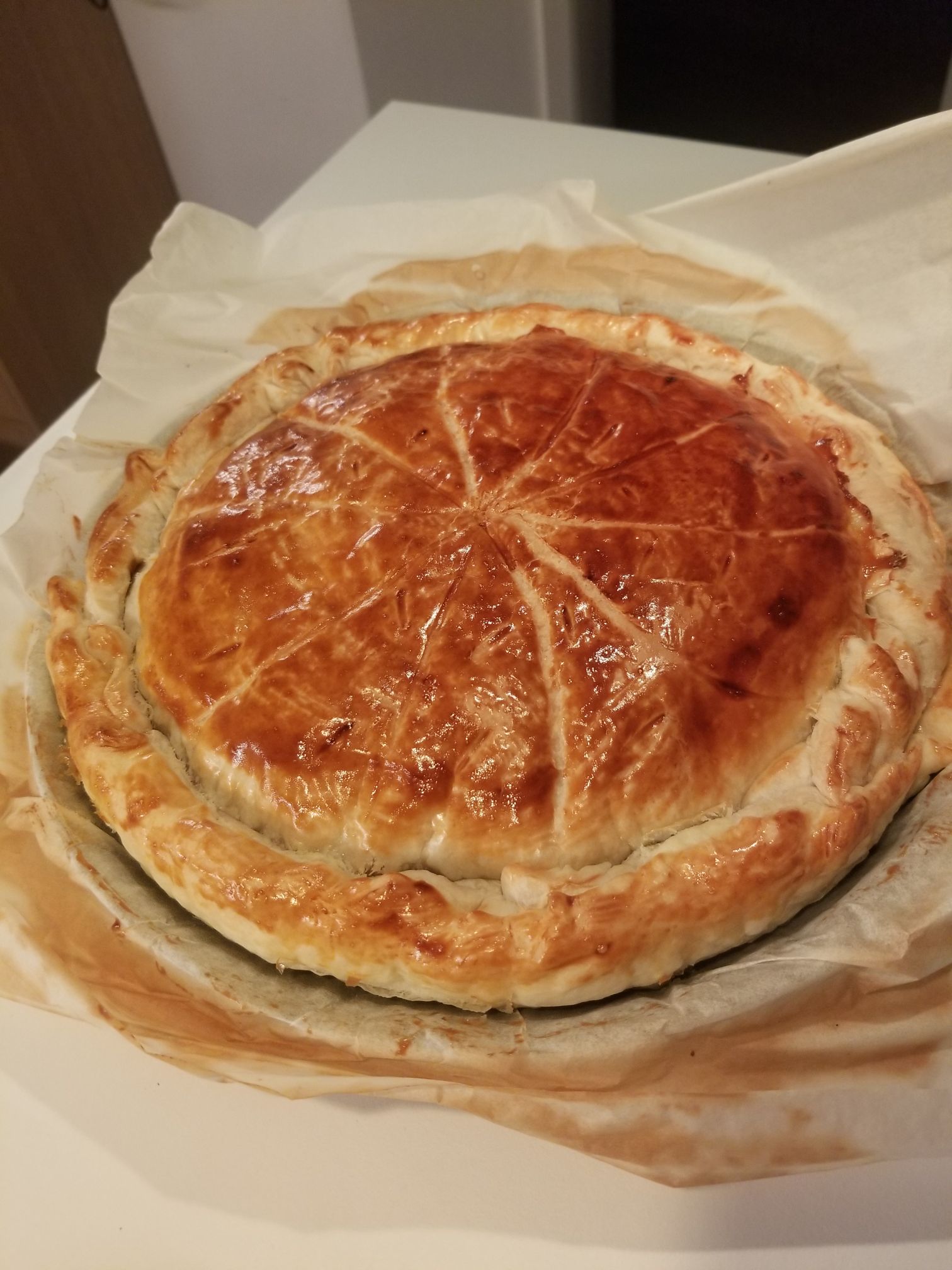 - Recouvrir de la 2ème pâte feuilletée et sceller les 2 pâtes.